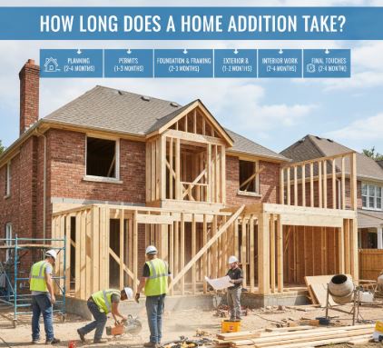 If you’re planning to expand your living space, one of the first questions homeowners ask is: How long does a home addition take? Whether you’re adding a bedroom, extending your kitchen, or building a second story, understanding the timeline helps you plan better and avoid surprises.